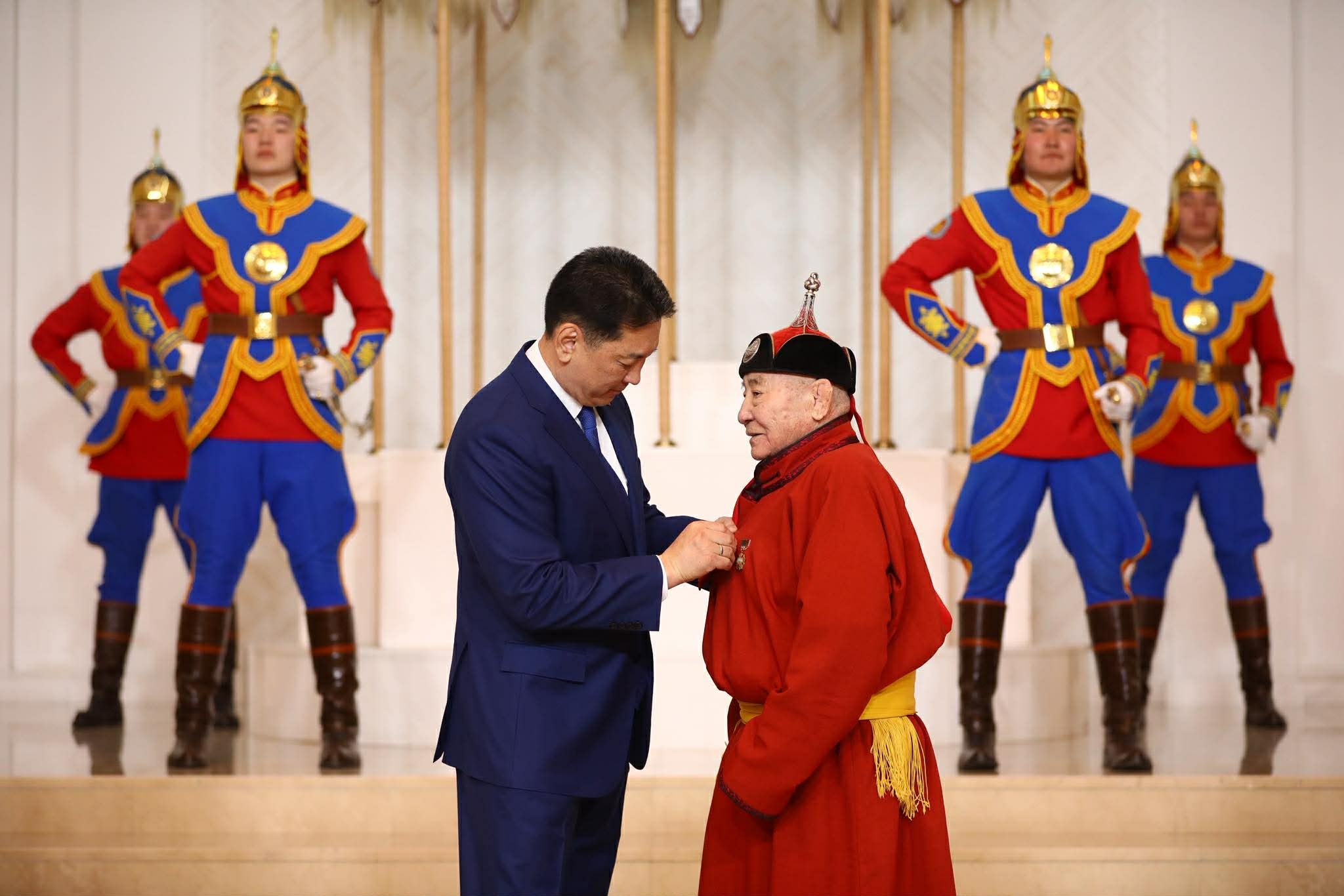 Ардын багш Д.Сэрээтэрт Хөдөлмөрийн баатар цол хүртээлээ Sonin.mn agency 5 цагийн өмнө XVII жарны “Сүрээр дарагч” хэмээх гал морин жилийн Цагаан сарын баярыг тохиолдуулан Монгол Улсын Ерөнхийлөгч Ухнаагийн Хүрэлсүх нэр бүхий эрхмүүдэд төрийн дээд цол, одон, медаль хүртээлээ.Хөдөлмөрийн баатар цолыг:Биеийн тамир, спортын салбарт хүч хөдөлмөрөө зориулж, олимп, тив, дэлхийн уралдаан тэмцээнд амжилттай оролцон, эх орныхоо нэрийг өндөрт өргөж, олон зуун шавиа сурган дадлагажуулж, шилдэг тамирчид бэлтгэн, олимпизмыг дэлгэрүүлэх, үндэсний болон чөлөөт бөхийг хөгжүүлэх үйлсэд оруулсан гавьяа зүтгэл, үндэсний бөхийн түүхэн уламжлалыг хойч үедээ өвлүүлэн үлдээхэд оруулсан хувь нэмрийг нь үнэлж Ардын багш, гавьяат тамирчин, чөлөөт бөхийн олимп, дэлхийн хүрэл медальт, Улсын харцага, профессор, бэлтгэл хошууч Данзандаржаагийн Сэрээтэрт хүртээж, баатрын “Алтан соёмбо” тэмдэг, Сүхбаатарын одонгоор шагналаа.Ардын багш цолоор:Сэтгүүл зүй, соён гэгээрэл, боловсролын салбарт үр бүтээлтэй ажиллаж олон зуун өгүүллэг, тууж туурвин, сэтгүүл зүйн мэргэжлийн боловсон хүчнийг бэлтгэх, ур чадварыг нь дээшлүүлэхэд хичээл зүтгэл гарган, ард олноо соён гэгээрүүлэх үйл хэрэгт оруулсан хувь нэмрийг нь үнэлэн Эрдмийн их сургуулийн ахмад багш, доктор, профессор, зохиолч, сэтгүүлч, Соёлын гавьяат зүтгэлтэн Тугалхүүгийн Баасансүрэн,Ардын жүжигчин цолоор:Монголын балетын урлагийг хөгжүүлэх үйлсэд авьяас билиг, ур чадвараа зориулж, дэлхийн сонгодог болон үндэсний олон арван балетын гол дүрийг мэргэжлийн өндөр түвшинд чадварлаг бүтээж, балетын урлагийг хөгжүүлэн, залуу хойч үеэ сурган хүмүүжүүлж, балетын урлагт үнэтэй хувь нэмэр оруулсан Гавьяат жүжигчин, Дуурь, бүжгийн эрдмийн театрын балетын гоцлол жүжигчин, балетмейстр Хоролдаваагийн Гэрэлчимэг,Гавьяат эдийн засагч цолоор:Завхан аймгийн “Улиастай ирээдүй хоршоо”-ны дарга Алтангэрэлийн Дашдорж,Гавьяат хуульч цолоор:Монгол Улсын Дээд шүүхийн Иргэний хэргийн танхимын тэргүүн Гүррагчаагийн Алтанчимэг,Гавьяат багш цолоор:Нийслэлийн Ерөнхий боловсролын Монгол-Германы хамтарсан 38 дугаар сургуулийн ахмад багш Цэрэндэндэвийн Дамба,АШУҮИС-ийн Дотрын тасгийн эрхлэгч, Анагаах ухааны доктор, профессор Сэр-Одын Хишигжаргал,Хүний гавьяат эмч цолоор:Говь-Алтай аймгийн Нэгдсэн эмнэлгийн захирал, клиникийн профессор Шаравын Мэндсайхан,Орхон аймгийн Бүсийн оношилгоо, эмчилгээний төвийн Төрөх тасгийн эрхлэгч Бадамжавын Эрдэнэбулган,Гавьяат барилгачин цолоор:“Монголын барилгын инженерүүдийн холбоо”-ны зөвлөхүүдийн танхимын гишүүн, “Сонголт дизайн” ХХК-ийн зөвлөх Батсүхийн Бямбажав,Гавьяат тээвэрчин цолоор:Ахмад тээвэрчин Цэдэндагвын Мигиддорж,Хөдөө аж ахуйн гавьяат ажилтан цолоор:Ховд аймгийн Булган сумын өндөр настан Мухаавайн Баатар,Гавьяат малчин цолоор:Өмнөговь аймгийн Манлай сумын ахмад малчин Должинсүрэнгийн Бямбажав,Аж үйлдвэрийн гавьяат ажилтан цолоор:“Багануур дулааны станц” ТӨХК-ийн ерөнхий инженер Арчихарын Лхамсүрэн,“Траст трейд” ХХК-ийн ерөнхий захирал Мандахын Мөнхбат,Үйлчилгээний гавьяат ажилтан цолоор:Нийслэлийн Ерөнхий боловсролын 63 дугаар сургуулийн ахлах тогооч, хоол зүйч Гаваагийн Сэлэнгэ,Соёлын гавьяат зүтгэлтэн цолоор:Үндэсний бөхийн тайлбарлагч Ойдовын Батмөнх,Гавьяат жүжигчин цолоор:“Түмэн эх” чуулгын гоцлол дуучин Сүрэнхорлоогийн Нэргүй,Гавьяат дасгалжуу