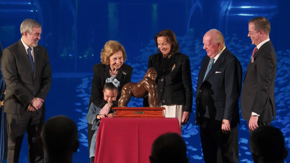 Su Majestad la Reina Doña Sofía ha recibido este jueves en Las Palmas de Gran Canaria el Premio Gorila del Loro Parque en reconocimiento por una trayectoria "ejemplar en defensa de la naturaleza". El acto se ha celebrado en el acuario Poema del Mar, parte del grupo que forma Loro Parque y ante más de 250 personas. La ceremonia ha sido presidida por el presidente de Canarias, Fernando Clavijo, y el presidente de Loro Parque, Wolfgang Kiessling. Este es el máximo reconocimiento que otorga el Loro Parque, que ha organizado una gran ceremonia en la isla grancanaria ante más de 250 invitados entre autoridades, científicos, representantes institucionales y colaboradores de su fundación. Antes, la Reina Sofía descubrió una placa conmemorativa con su nombre y realizó un paseo para conocer las instalaciones. Durante el encuentro se puso en valor el papel de la conservación como eje esencial del desarrollo sostenible y el presidente canario incidió en que el Premio Gorila "representa la idea de que la conservación de la naturaleza no es una tarea lejana o abstracta, sino una responsabilidad compartida que exige compromiso, constancia y cooperación". Asimismo, subrayó que el reconocimiento a la Reina Sofía "pone en valor una trayectoria marcada por su apoyo constante a la ciencia, la educación ambiental y la protección de la fauna", y que su ejemplo "ha contribuido a situar la defensa de la biodiversidad en el centro del debate público y de la conciencia colectiva". Clavijo destacó el papel de Loro Parque y de Loro Parque Fundación, destacando que "han sabido unir ciencia, divulgación y acción al servicio de la conservación, convirtiéndose en un referente internacional en la protección de la biodiversidad". CLAVIJO DESTACA A CANARIAS COMO UNA TIERRA "ÚNICA" PERO FRÁGIL En este contexto, afirmó que Canarias "es una tierra con una biodiversidad única y de ecosistemas frágiles, proteger el entorno no es una opción, sino una obligación". Por ello, explicó que el Gobierno trabaja en la actualización de la Ley de Cambio Climático y Transición Energética y en la futura Ley de Biodiversidad Canaria, con el objetivo de avanzar hacia "un modelo que integre la protección ambiental con el desarrollo sostenible y garantice oportunidades y bienestar para las generaciones futuras". El presidente de Loro Parque, Wolfgang Kiessling, por su parte, recordó los inicios del proyecto, junto con su esposa Brigitte, hace más de cinco décadas y la evolución de la compañía hasta convertirse en un referente internacional. "Hoy, 54 años después, todos sabemos que Loro Parque ha triunfado y es una parte integral de la industria turística", señaló, subrayando que el grupo cumple con todas las expectativas de un zoológico moderno acreditado: "conservación, educación, investigación científica, bienestar animal, biodiversidad y protección de la naturaleza". Kiessling destacó que desde 1988 el grupo ha puesto un énfasis especial en la protección del medio ambiente y que, gracias al apoyo de Loro Parque Fundación, desde 1994, se han impulsado proyectos decisivos para la supervivencia de especies amenazadas. "Y hoy, vivo el momento culminante de mi carrera, con la entrega de nuestro Premio Gorila a Su Majestad la Reina Doña Sofía, mi buena amiga de juventud en Salem, que nos honra con su presencia", afirmó emocionado. Por su parte, el presidente de Loro Parque Fundación, Christoph Kiessling, definió el acto como "uno de los momentos más significativos" para la Fundación y agradeció "profundamente" la presencia de la Reina Doña Sofía, "que otorga a este acto un significado excepcional". 18 ESPECIES SALVADAS GRACIAS A LORO PARQUE FUNDACIÓN Christoph Kiessling recordó que Loro Parque Fundación ha apoyado más de 300 proyectos en 53 países, con una inversión superior a 30 millones de dólares, contribuyendo a salvar de la extinción 18 especies. Subrayó además el liderazgo científico de la entidad en el estudio del impacto del cambio climático en la Macaronesia y anunció la puesta en marcha del proyecto SOFIANet (Sensing Ocean Frequencies through Integrated Acoustic Network), una iniciativa destinada a reforzar la protección de los cetáceos en el Estrecho de Gibraltar mediante una red integrada de monitorización acústica. El proyecto contará con la colaboración de la Fundación Reina Sofía y la Universidad de La Laguna. El Premio Gorila, creado en 2003 por iniciativa de Wolfgang Kiessling, distingue a personalidades con un compromiso ejemplar con la biodiversidad y el respeto por los animales. En esta edición, el galardón reconoce la trayectoria de la Reina Doña Sofía, cuyo apoyo constante a iniciativas científicas y de protección animal ha sido una constante a lo largo de su vida. La ceremonia concluyó con una prolongada ovación en un escenario, la sala principal Deep Sea, que simboliza la belleza y fragilidad de los océanos. La noche, explican desde Loro Parque, reafirma el "compromiso compartido entre instituciones, ciencia y sociedad civil para situar la defensa de la biodiversidad en el centro de la acción colectiva". PIONERA EN LA PROTECCIÓN ANIMAL La Reina Sofía fue pionera en el ámbito de la realeza por su implicación en estas causas y su agenda institucional ha reflejado durante décadas un apoyo frecuente a iniciativas orientadas a la preservación de especies en peligro de extinción, así como a la defensa de los ecosistemas marinos frente a la contaminación. Ha impulsado y respaldado acciones de sensibilización ambiental, con un mensaje reiterado sobre la importancia de la educación para revertir el impacto de los residuos, especialmente los plásticos, en el océano y en la cadena alimentaria. A través de su Fundación, constituida en 1977, ha auspiciado y apoyado diversas causas medioambientales y de protección animal: desde proyectos de restauración de entornos agrícolas hasta el respaldo a entidades que combaten el